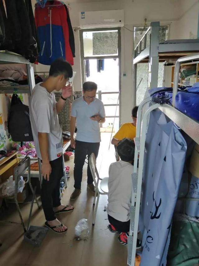 为充分发挥学校党员队伍的模范带头作用,加强党员教师与学生的联系,维护学生宿舍的安全稳定,帮助生物系学子解决学习与生活上的疑难问题。6月4日中午,图书馆馆长陈方平、财务处处长吴文平、办公室副主任周艺勇、学生处副处长洪洲培、生物系书记林杰钦、生物系辅导员一行人走访了挂钩的学生宿舍。每到一间宿舍,领导老师们都亲切地与学生交谈。