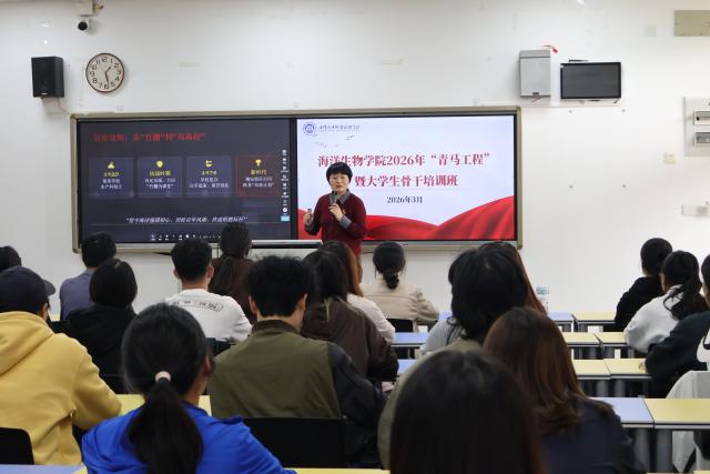 为深入学习贯彻党的二十届四中全会精神,厚植爱国情怀,激励青年学子在坚定信念中找准方向,在勇担使命中砥砺成长,3月26日,海洋生物学院党委书记赵梅英、副院长林娇芬学院为“青年马克思主义者培养工程”学员、入党积极分子及大学生骨干讲授专题思政课,引领学子以奋进姿态开启成长新征程。