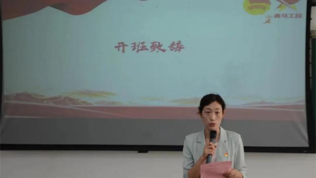 开班仪式上,党总支副书记赵梅英老师为大家致辞,她指出实施青马工程是一个政治性很强的工作,是着眼党和国家事业接续发展的一项重大战略工程。青马工程的目标就是要帮助大学生骨干从一名业务上争当先进,政治上追求进步的优秀青年,成长为坚定而自觉的青年马克思主义者。