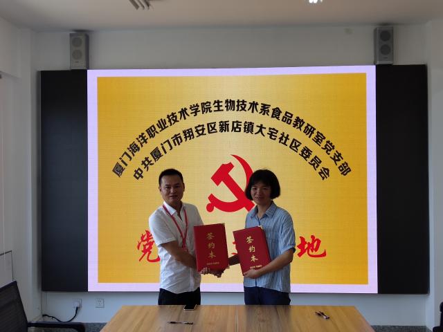 7月9日,我院生物系食品教研室党支部一行9人,来到翔安区新店镇大宅村,与中共厦门市翔安区新店镇大宅社区委员会开展支部共建活动,并同大宅社区正式签订党建共建协议。该活动由生物系党总支书记林杰钦带队,大宅社区党委书记陈锦芳热情接待了支部成员。