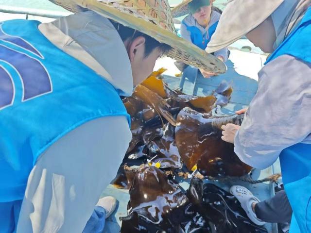 6月29日,厦门海洋职业技术学院海洋生物学院“蓝海金带”三下乡实践队奔赴福建省霞浦县,联合福建一嘉海带苗业有限公司,参观海带养殖基地、育苗场,以“专业调研+实践赋能+精神传承”三位一体的模式,将专业实践与乡村振兴深度融合,为当地海洋生物产业发展注入青春力量。