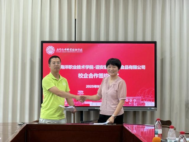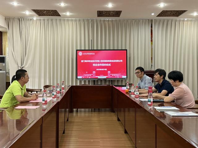 2025年9月19日,诏安溜溜果园食品有限公司一行到访我院,双方就深化校企合作进行了广泛交流,并举行了校企合作协议签订仪式。此次合作旨在共同推动学生实习实践、毕业生就业、人才培养方案改革、科研项目合作等多方面的协同发展。海洋生物学院副院长林娇芬、副院长王俊、食品与药品教研室主任孙兆敏出席仪式。