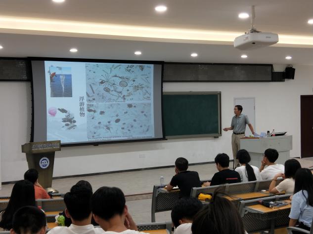 高亚辉老师为学生们讲解了海洋浮游植物的多样性及应用、赤潮这些个方面来讲解。让我们认识了解到藻类例如硅藻的应用方面,硅藻可以应用于碳循环、环保检测、保健食品以及药物等。教授还带了一些有趣的藻类细胞的图片给我们观赏传阅。教授还从我们的生活入手给我们讲述了赤潮发生的原因以及危害,抛出问题:夜光藻有害吗?答案各执己见,后教授对此问题详细的作出回答,同学们受益颇多。课后部分同学还询问了教授关于其余藻类是否能和硅藻有大致相同的作用等问题。此次课程使同学们对浮游植物有了更深入的了解。