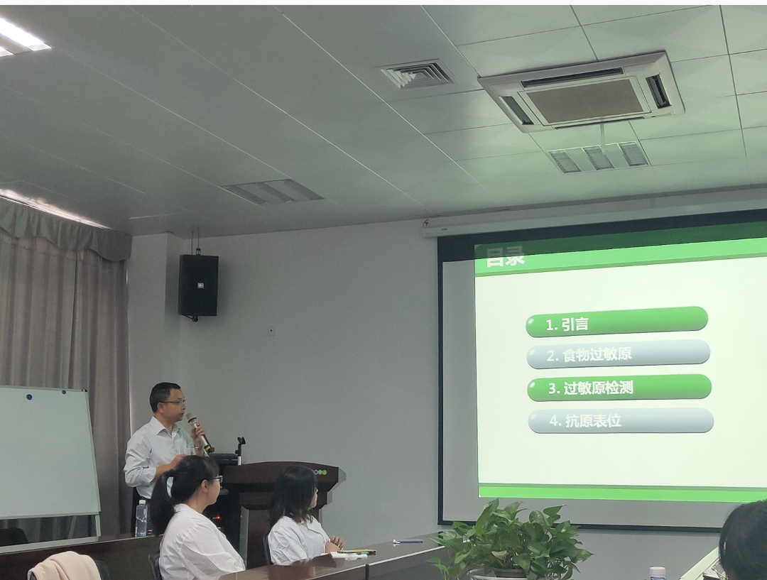 这次讲座刘光明老师主要介绍了关于食物过敏的相关知识。由引言,食物过敏原,过敏原检测和抗原表位四部分组成。食物过敏是人们对食物产生的一种不良反应,属机体对外源物质产生的一种变态反应。食物过敏原包括植物性过敏原和动物性过敏原,植物性过敏原主要有花生、大豆、小麦和坚果;动物性过敏原主要有牛奶、鸡蛋、鱼类和甲壳类水产动物。过敏原的检测有经典方法和新型方法,经典方法有酶联免疫吸附反应、免疫印迹、斑点杂交、免疫层析和聚合酶链式反应;新型方法有等离子表面共振技术和液相色谱-质谱联用技术。抗原表位又称为抗原决定簇,是指抗原结构表面存在的可促使机体产生抗体或与免疫细胞结构中抗原受体发生结合的免疫活性区。