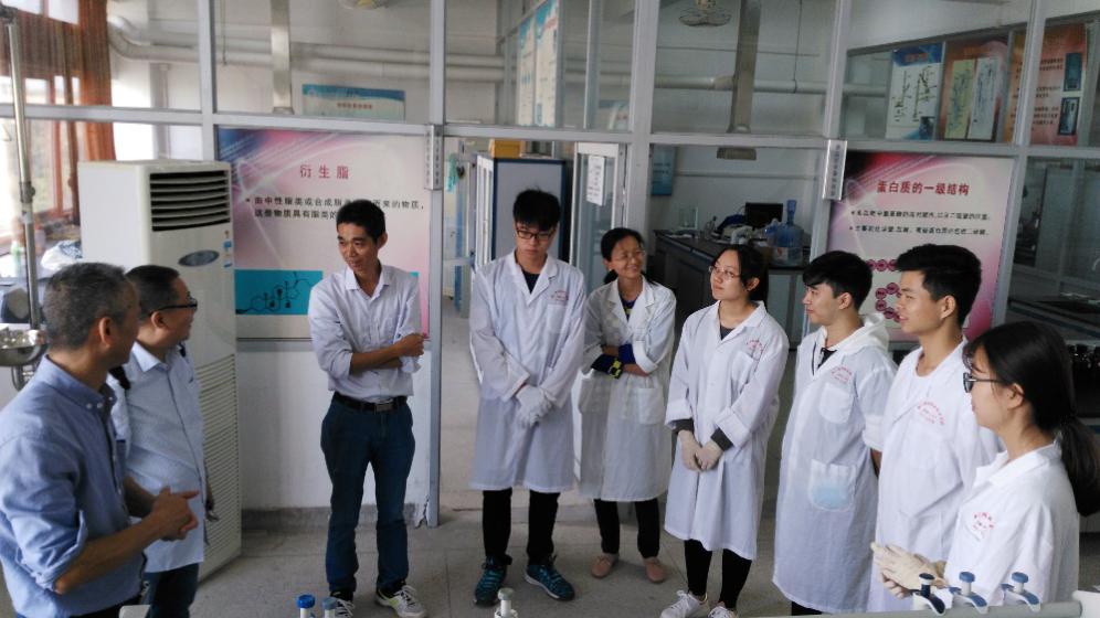 2018年4月福建省教育厅对厦门海洋学院开展福建省示范性现代职业院校工作进行评估,评估专家实地考察生物系仪器分析实训室。兴趣小组同学和老师一同准备实验室的实验方案,熟练仪器的使用,准备专家的提问等。