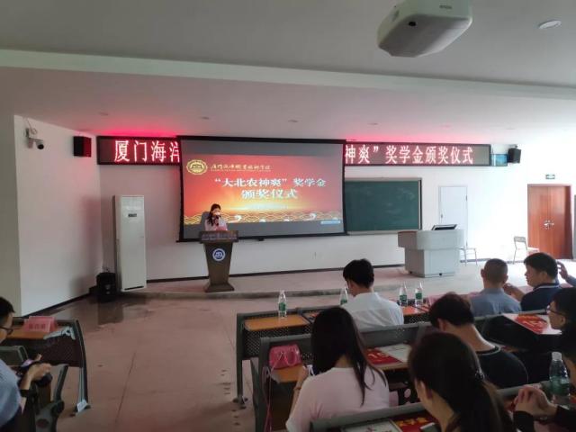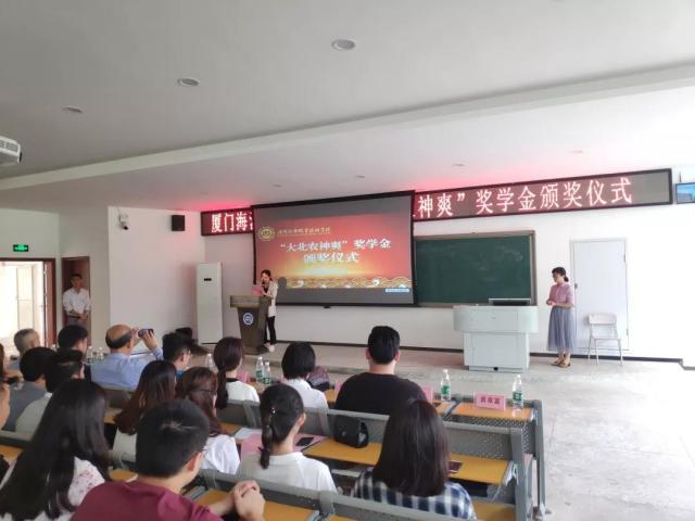 2019年4月22日下午,我院“大北农神爽”奖学金颁奖典礼于翔教t1报告厅隆重举行,校党委副书记汤忠民、大北农神爽水产科技集团神爽特区副总裁樊博江、大北农神爽水产科技集团神爽特区副总裁王宁、大北农神爽水产科技集团综合管理办主任陈莹、学生处全体工作人员、生物系师生代表共计200余人出席本次颁奖典礼,颁奖典礼由生物技术系党总支书记林杰钦主持。