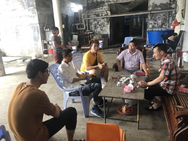 4月30日上午生物技术系党总支书记林杰钦、黄标武老师、乐丽婷辅导员和养殖班学生一行人走访两位优秀校友企业家陈斌福先生和林雨先生。