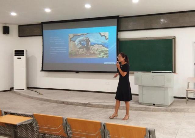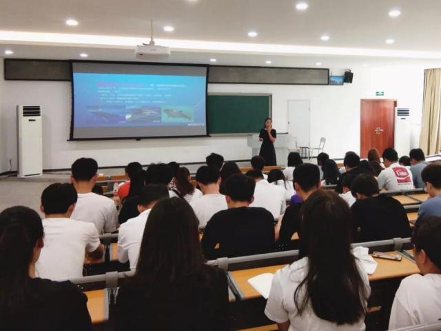 讲座上,许敏博士与同学们分享了自己在求学过程中的经历和感悟;详细介绍了鲸鱼与海豚的形态特征、生活习性、地理分布、繁殖信息等习性,以及它们正在面临的巨大生存危机——因为海洋环境的恶化,处于海洋食物链顶端的大型哺乳类动物数量正在逐年减少。许敏博士列举国内海域近几年出现的鲸鱼搁浅事件与游船误伤近海海豚的事件,呼吁我们要重视对鲸鱼海豚的保护。