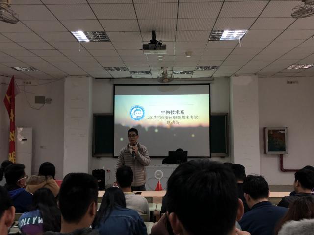 12月28日,我系举行班委述职报告暨期末考试总动员,参与本次会议的有生物系党总支书记林杰钦、团总支书记吴姗、学生党支部书记刘梦绮、全体辅导员、三委会干部以及大一各班班委。
