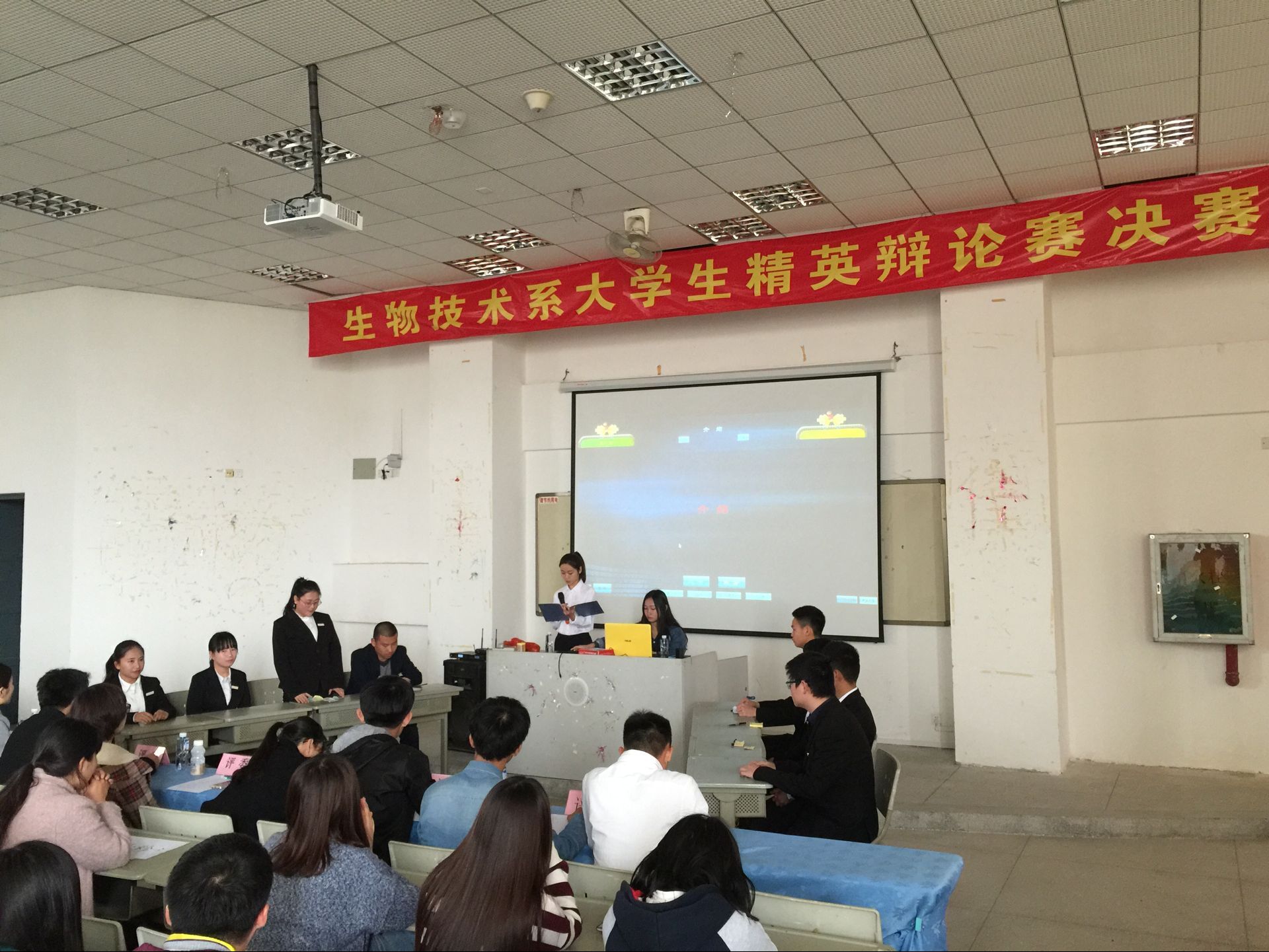 2016年3月29日,下午2点30分生物技术系辩论赛决赛在T3举行。本次决赛邀请了生物系党总支书记林秀芬老师、生物系团总支书记洪洲培老师、生物系团总支副书记洪亚兰老师、生物系辅导员朱巧旋老师等担任评委。