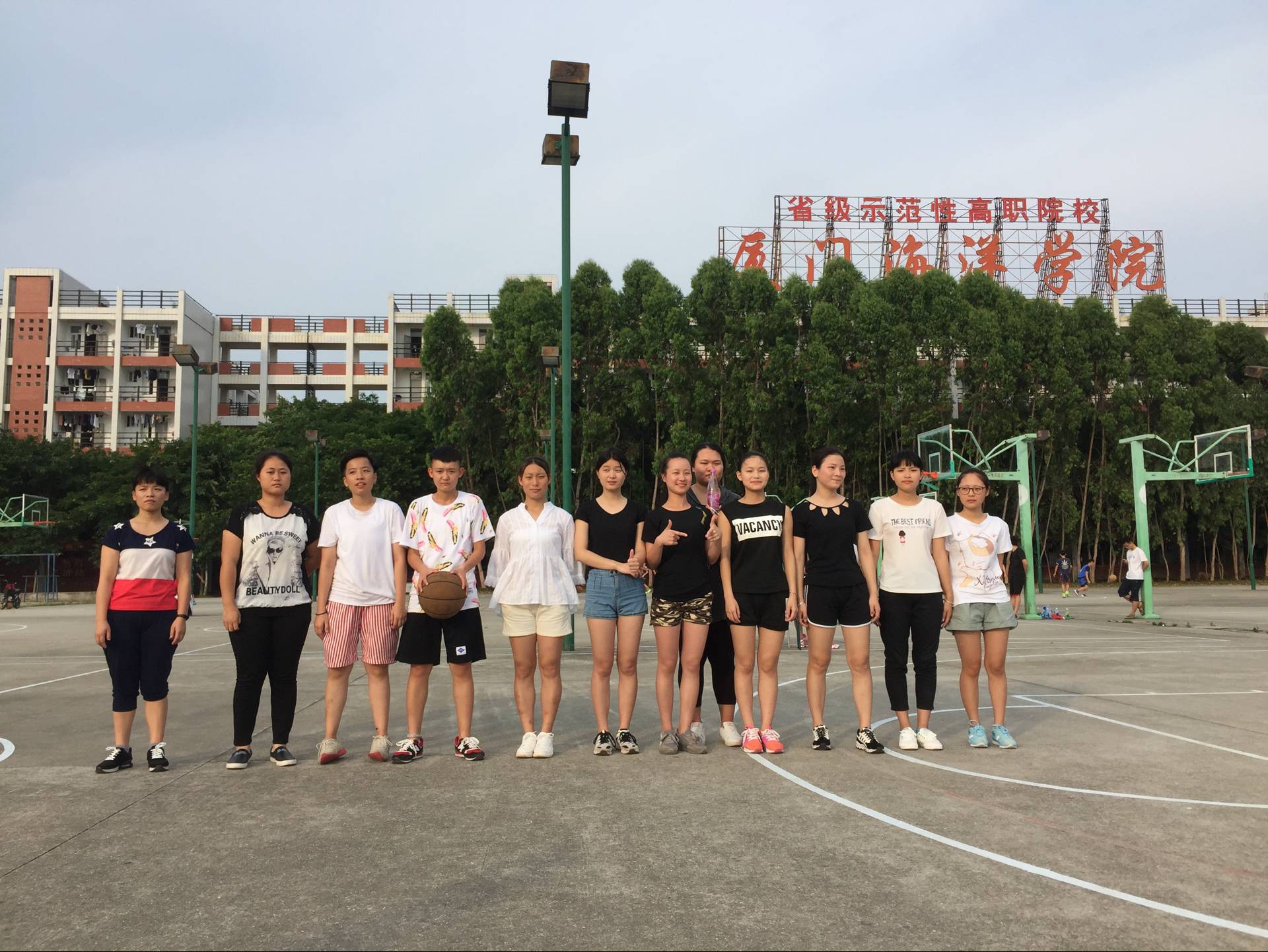 为了丰富大学生的业余生活,增加学习之余的乐趣,增加彼此之间的沟通与信任,增强女生的体质以及她们对体育的热爱。我系于2016年5月30日星期一下午17:00举办女子定点投篮。本次比赛共有13人到场参加。