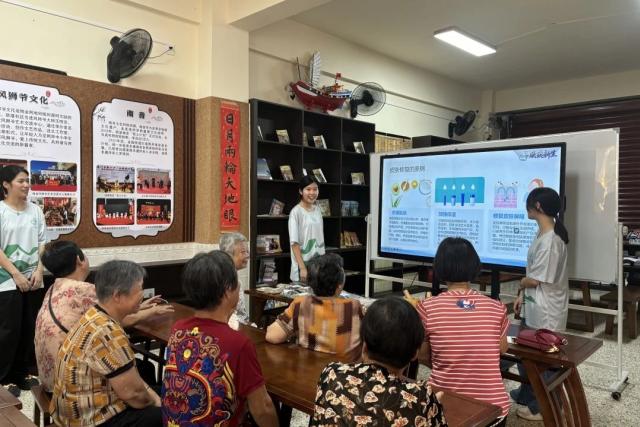 “硫磺皂能杀菌,但天天用会把皮肤‘洗坏’!”在社区广场的科普小课堂上,团队成员用通俗易懂的闽南话讲解,为中老年居民纠正护肤误区。针对渔民群体因过度清洁导致皮肤屏障受损的问题,他们结合生物学专业知识,讲解“温和清洁+保湿修复”的养护要点,还现场演示了如何根据肤质选择护肤品。