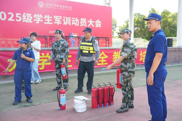 军训期间,消防与毒品预防专题讲解活动暖心开讲。消防教官结合校园案例,详解火灾逃生技巧与灭火器实操要点,手把手指导同学们掌握安全技能;禁毒宣讲员通过仿真模型和真实案例,揭露毒品的隐蔽危害,引导大家树立防毒意识。这场干货满满的“安全必修课”,让新生们在锤炼意志的同时,筑牢安全防线。