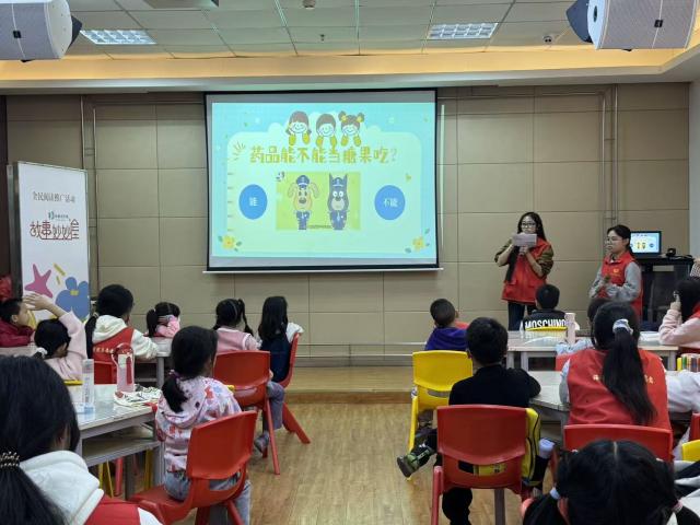 以“药品与零食区分”为切入点,志愿者通过原创绘本《兔兔做的对不对》,生动呈现擅自服药、乱存药品等典型误区,搭配互动问答引导儿童辨析对错,建立“药品非零食,不可随意触碰食用”的核心认知。同时,借助仿真模型让儿童通过多感官对比,强化药品与零食的区分能力,从源头规避误食风险。