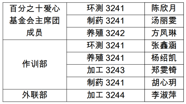 海洋生物学院第二十届基金会学生负责人名单人员如下: