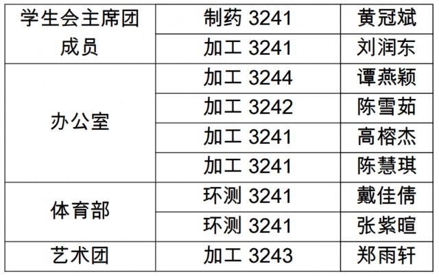 经学生干部培训后认定、民主表决、学院审核,海洋生物学院第二十届学生委员会负责人名单公示如下: