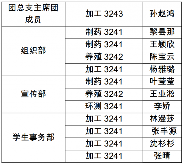 海洋生物学院第二十届团总支学生负责人名单人员如下: