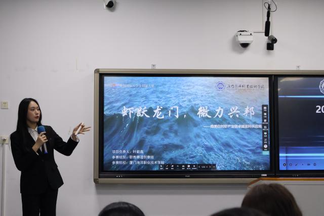 在项目路演环节,各队伍依次上台,通过PPT演示讲解,向大家展示了项目的独特创新。从智能海洋养殖的创新模式,到海洋生物资源的深度开发利用,再到海洋生物科技在护肤领域的应用……每一个项目都紧扣海洋生物主题,充满创新性与实用性,展现了参赛选手们对海洋生物领域的深刻理解和积极探索。他们用生动的讲解、精美的展示,将复杂的科学概念和前沿技术变得通俗易懂,让现场观众仿佛置身于一个充满无限可能的海洋创新世界。