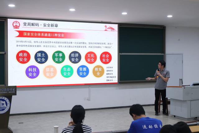 “在微信朋友圈分享照片看似平常,但如果拍摄军事基地、军用港口等未经许可的场所,可能就会造成意想不到的危害。”朱炜列举了一系列大学生日常生活的鲜活案例,分析了学生群体面临的国家安全问题与挑战。通过深入剖析《反间谍法》等法律法规,引导同学们深刻认识到国家安全并非遥不可及,而是与每位公民紧密相连。