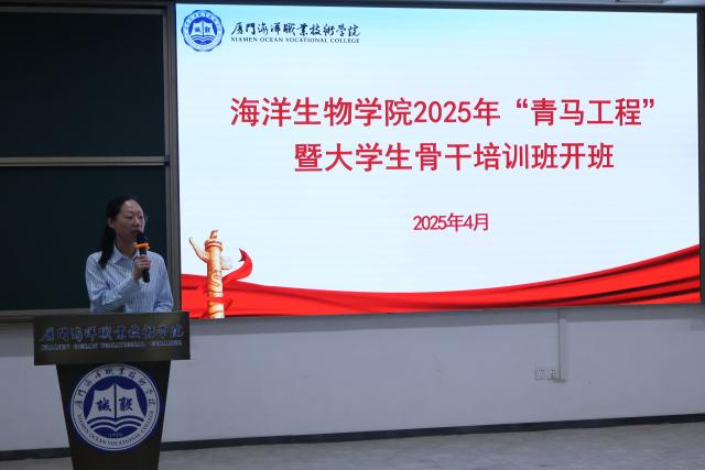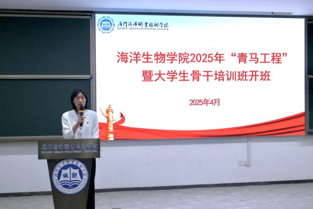 4月17日,海洋生物学院在翔安校区举行2025年青马工程暨大学生骨干培训班开班仪式。学院党总支书记赵梅英、党总支副书记周晓翠、团总支副书记欧洪扬、辅导员代表及学生骨干130余人参加。活动由周晓翠主持。