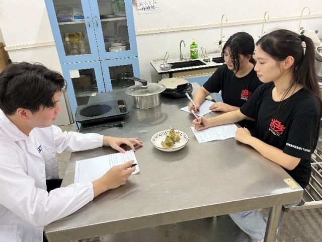 随后实践队在校园内的食品加工实训室,结合电子鼻、质构仪等现代食品品质品鉴仪器,结合学到的传统制作技艺,优化闽南古早美食的制作及烹饪方式。