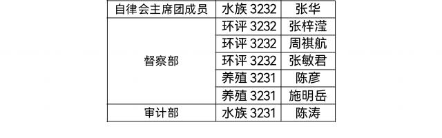 经学生干部培训后认定、民主表决、学院审核,海洋生物学院第十九届自律会学生负责人名单公示如下: