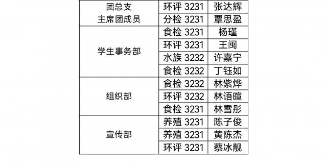 经学生干部培训后认定、民主表决、学院审核,海洋生物学院第十九届团总支学生负责人名单公示如下: