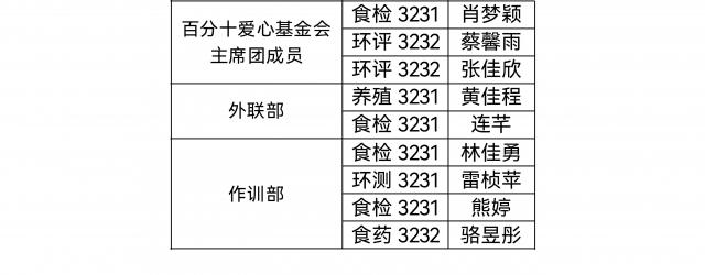 经学生干部培训后认定、民主表决、学院审核,海洋生物学院第十九届基金会学生负责人名单公示如下: