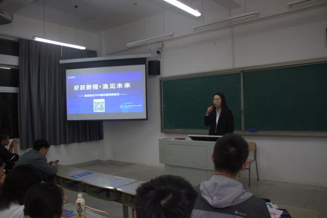 广州利洋福建区域招聘经理吴德来介绍了企业文化、核心业务及招聘需求,现场互动热烈,同学们踊跃咨询并参与测试。利洋公司是以水产动保(药品)及种苗(虾)的开发、生产和销售为主,以生态养殖服务为核心,以连锁营销渠道为基础的专业性技术公司。企业的药店遍布全国主要水产养殖区域,总部位于广州,属国家级高新技术企业,水产动保领军企业,是国内首家水产动保上市公司。