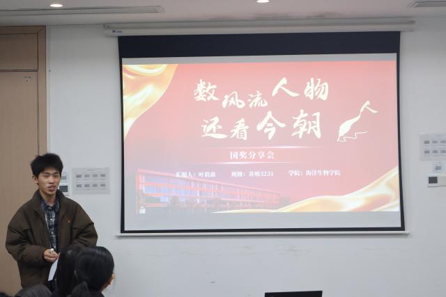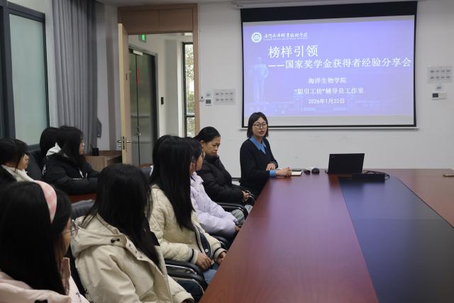 为发挥榜样引领作用,激发学子奋发向上,1月22日,海洋生物学院“职引工坊“辅导员工作室在敦睦楼206举办国家奖学金获得者经验分享会。食检3231班梁有、养殖3231班叶毅鑫两位国家奖学金得主,围绕专业学习、创新实践、综合素质提升及生涯规划展开分享。