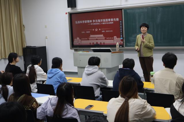 为深入学习贯彻党的二十届四中全会精神,传承红色基因、弘扬科学家精神,激励青年学子在新时代勇担使命、砥砺奋进,12月3日,海洋生物学院在翔教1501智慧教室举办了一场主题鲜明、内容深刻的党课。学院党总支书记赵梅英、副院长林娇芬分别授课,学生党员、发展对象、入党积极分子及学生干部代表齐聚一堂,共同接受思想淬炼与精神洗礼。