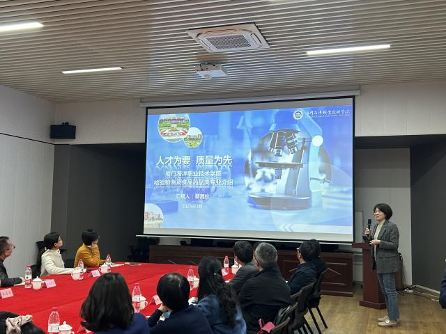 4月3日,党委副书记、院长刘光明率海洋生物学院党政领导班子及教师代表赴厦门市检验检测认证协会调研,并与厦门市药学会、厦门市保化协会、厦门市产品质量监督检验院及健研检测等6家企业代表座谈交流。厦门市市场监督管理局原药品总监杨学勇、认证与检验检测监督管理处处长陈达龙出席会议。政、校、行、所、企五方代表齐聚一堂,共商检验检测及食品药品行业人才需求与产教融合协同创新路径。