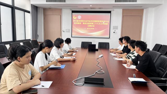 7月28日,在翔安校区敦睦楼206会议室,学院党总支书记赵梅英主持召开专题学习会,深入开展研讨学习活动,组织团员青年交流体会。会上,赵梅英带领师生代表原原本本、逐字逐句学习习近平总书记重要贺信和党中央致词精神。她表示,习近平总书记的重要贺信和党中央致词,为推动中国青年运动进一步向前发展提供了重要遵循,为新时代新征程青联和学联事业发展指明方向、提出要求。她结合全国学联二十八大章程修改内容,阐释了新时代青年工作的新要求、新使命,并强调全体辅导员和学生干部要带头学、深入学,并积极投身精神宣讲和实践,确保学习成果转化为推动工作的强大动力。