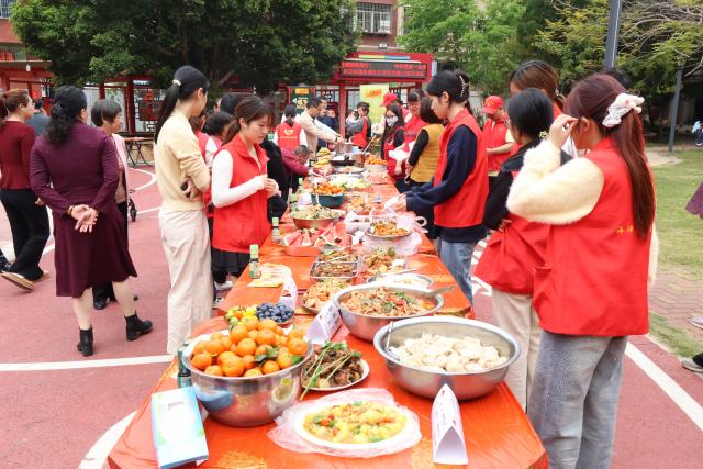 百家宴的热闹背后,是志愿红的暖心护航。食品智能加工技术专业的学子们发挥专业特长,精心制作了蛋糕与蛋挞,为这场邻里盛宴增添了别样风味。活动现场,志愿者们迅速进入服务角色,从场地布置、菜品摆放,到引导居民就座、维持现场秩序,每一个环节都认真细致、有条不紊。少数民族学生与港澳台学生主动融入,与社区居民亲切交流,在忙碌的志愿服务中拉近彼此距离,让邻里情在互帮互助中愈发浓厚,也让青春身影成为百家宴上一道亮丽的风景线。