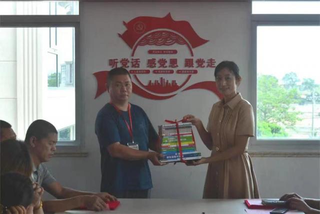 党总支副书记赵梅英向朱坑社区党总支图书室赠送图书