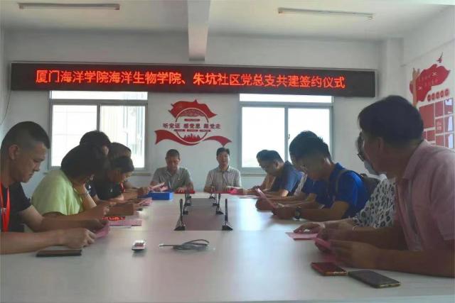 双方本着“共享资源、优势互补、共同提高”的双赢原则开展党组织结对共建,海洋生物学院党总支将发挥人才优势,在帮助社区儿童周末培训、为社区党员上党课、开展海洋科普等方面为当地居民提供教育服务,提升社区居民思想道德和科学文化素质,助力乡村振兴,朱坑社区党组织为我院师生提供社会实践平台,让大学生在服务社会、服务他人的实践活动中锻炼能力、提升素质、完善自我。海洋生物学院“寻梦江海”三下乡实践队学生代表参加此次共建活动。