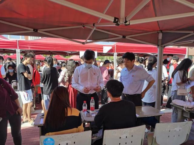 报到处的迎新帐篷下,各班新生助导耐心讲解报到流程,话语温柔;林荫道上的新生义卖,义卖员们竭尽全力,对来往的新生们介绍义卖商品;握手处的签名墙仪式感满满,正如--你的名字,我的海院,加入海院大家庭,我们十分欢迎。