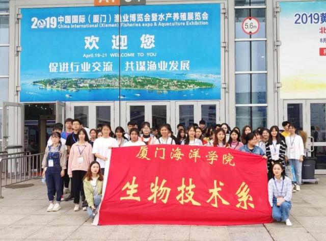 第十四届中国国际(厦门)渔业博览会水产养殖展览会于4月20日在厦门国际会展中心如期举办,生物系学生组织参观。此次展览会中与生物科技、养殖技术有关的企业在展厅内设置了分门别类的展区,有水产智能设备、药品制造、渔业管理系统软件开发、海鲜食品等一系。有些展区展示了自主养殖的鱼、虾等海鲜食品,现场烹饪以供食用,吸引了很多来参观的群众和同学。
