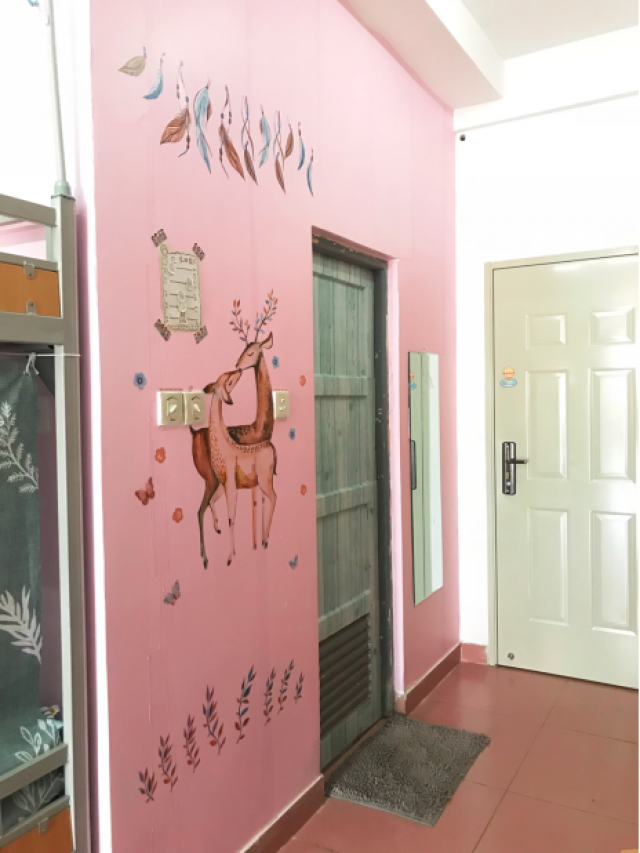 各种各样的装扮装饰:放置在阳台的小桌子,摆放在上的茶具,充满生活的气息;特色的摇椅、用废品制作的小摆件,体现着同学们的智慧之光;夜晚着亮闪闪的小夜灯,会伴着谈天时的欢声笑语,无比惬意。