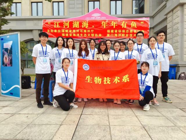 2018年11月4日,生物系“江河湖海,年年有鱼”志愿活动应邀参加厦门“国际海洋周”的配套活动之一:厦大“厦门大学海洋科学开放日”活动。只见在厦大翔安校区金泉楼前,现场的红色帐篷里人头攒动,人气爆棚,当日参与开放日活动的过万市民中有近乎三分之一聚拢展位前,大家通过参与“来帮鱼儿找找家”互动游戏和“保护海洋,签字板”活动等方式,深入了解了福建省增殖放流的缘由和现状,对生物系志愿者为预防水域生态荒漠化作出的努力赞赏有加。