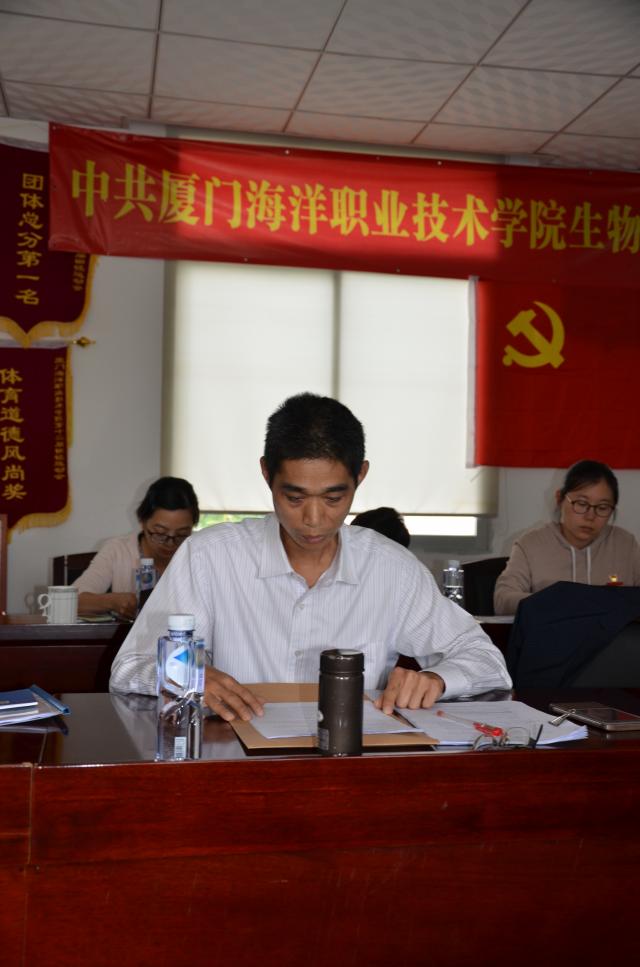 从听取党总支书记林杰钦精辟而全面的《不忘初心匠造未来全面推进生物技术系创新发展和人才培养》中共厦门海洋职业技术学院生物技术系第三届总支委员会工作报告中,在座各位党员回顾了这三年来我们系在学院党委的正确领导下,全系党员不忘初心牢记使命,通过加强党的思想、组织、作风、制度和廉政建设,推进党建工作科学化和规范化,为生物技术系教育教学发展和改革提供了坚强有力的政治和组织保障,基本实现了预期目标。如“制度建设不断完善、‘两学一做’创造性开展、支部立项活动成绩突出、扩展生源地探索新型招生合作,开展大专班共建探索职业农民教育、以新风格匠造为目标全面提升育人质量……”