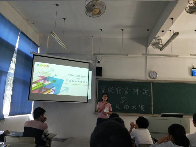 2018年10月18日,厦门海洋学院生物系于翔教1301举行“生物系星级宿舍评定暨宿舍装扮大赛动员会”。林杰钦书记、董燕青老师、各班副班长和宿舍长参加了本次大会。