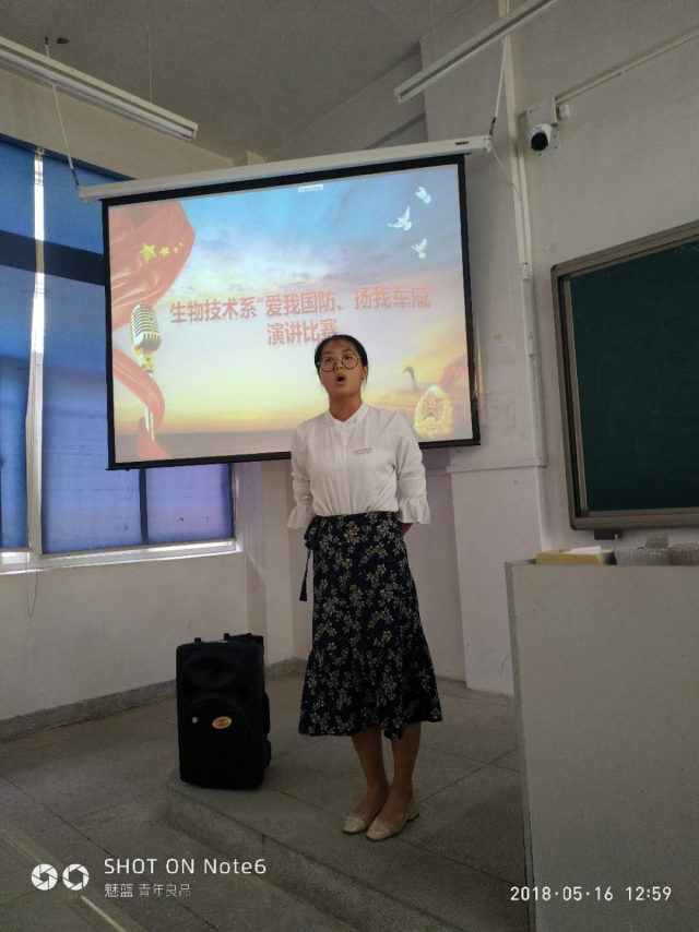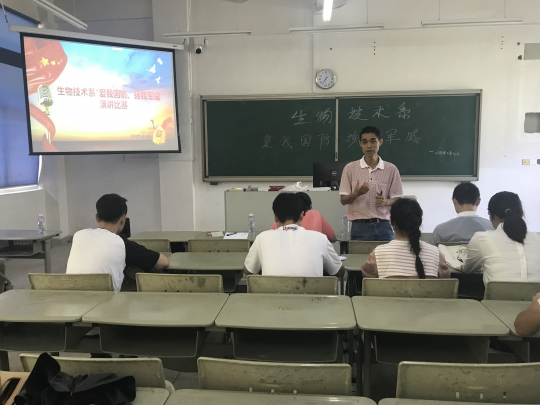 5月16日,我系“爱我国防、扬我军威”演讲比赛活动在教学楼3102教室举行,系党总支书记林杰钦、系团总支书记吴姗、全体辅导员以及生物系各班级学生代表参加活动。